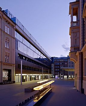 grundintention der grundgedanke des büro- und geschätshauses sparkassenplatz 2 ist die vernetzung unterschiedlicher raumausprägungen zum gesamthaus. diese raumausprägungen von sehr extrovertierten bis zu introvertierten bereichen ermöglicht ein entkommen aus der gleichförmigkeit von bürogebäuden. die raumbenutzer arbeiten in unterschiedlichen vernetzten raumidentitäten. rückhalt dieser vernetzung ist die längsgerichtete scheibenartige erschliessungszone, die wesentlich zur gesamterfahrung des hauses beiträgt. höhenentwicklung die ausgangsbasis der höhenentwicklung ist die höhenentwicklung des kaufhauses. die platzbezogene höhenentwicklung wird durch die ausbildung des obersten geschosses – rückversatz – um ca. 3m reduziert. durch diese neue geschossausprägung ergibt sich die vom gestaltungsbeirat geforderte verbesserung für den sparkassenplatz und behält trotzdem die schlüssige aus der morphologie der bestehenden und zukünftigen bebauung abgeleitete grundkonzeption. baukörper durch die ausprägung des obersten geschosses mit dem fehlenden oberen eck – staffelung – ist es möglich, die schichtung als grundidee des gebäudes beizubehalten. die schichtungskomposition der raumsequenzen entspringt keinem hierarchischen muster, sondern versucht spannungsfelder zwischen den einzelnen geschossen aufzubauen, die im sinne der grundidee die räumliche identitäten verstärken. die konkretisierung der gebäudestruktur in den bestandsgeschossen, ermöglicht das innere und äußere zusammenführen des um- und aufbauteils in eine zusammenhängende „neue“ gebäudeausprägung. |