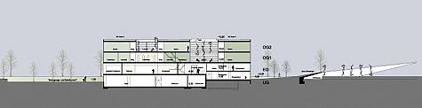 einfügung der städtebauliche grundgedanke ist den park kräftig und präsent bis zur gudrunstrasse zu bringen. aus diesem grundgedanken resultiert eine gebäudeskulptur als solitär in den park platziert. die gebäudeskulptur reicht von der gudrunstrasse in den park und steht in der gewählten positionierung in bezug zu den städtischen vernetzungssituaionen fussgängersteg richtung arsenal und dreiecksplatz gudrunstrasse sonnwendgasse. parkseitig wird die auflösung der stichstrasse ab der gellertstrasse angeregt und damit die infrastrukturvernetzung als wegenetz im park gesehen. durch diesen grosszügigen grundgedanken profitieren park und bildungseinrichtung und bilden eine kräftige stadtplanerische aussage eines öffentlichen gebäudes. gebäudekonzeption eine leicht höher gelegte promenade erstreckt sich von der gudrunstrasse in den park - nördlich dieser promenade fliesst der parkraum mit seinen außenanlagen und den grossen gemeinschaftseinrichtungen bis zu dieser verbindung und vernetzt die aussen- und innenraumsequenzen. südlich lagert sich an die promenade die kinderinnenraum- und aussenraumschicht an. der park, skulptural besetzt, ist die wesentliche raumwirkung über die gesamte grundstücksausdehnung. oben, unten, versenkt, hoch, nieder ist das angebotene raumerlebnis in diesem grünraum. die zweigeschossig verwobenen hauptunterrichtsgeschosse mit den eingeschnittenen höfen bieten offene clustereinheiten mit starken räumlichen erfahrungsangeboten und clusteroffenheit mit koppelbarkeit. jeder cluster hat einen integrierten lernhof, doppelseitig belichtete klassen, eine mehrgeschossige raumerfahrung und eine offene und unterschiedlich bespielbare beziehungsstruktur zu den nachbarcluster. die schule im park ermöglicht ein lernen mit und auch im aussenraum. die kindergartenschicht bietet ebenfalls eine räumlich differenziert ausgebildete höhenstaffelung mit einem sehr grosszügigen aussenraum. in sichtbezügen mit der gesamtstruktur verwoben, aber mit einer geschützteren seite. der sich zur gellertstrasse aufkantende spiel- und rodelhügel beinhaltet eine einfache gedeckte parkierungsvariante. die kindergartenschicht erfährt in der überarbeitung eine räumliche und funktionelle klärung. die grosszügigkeit der gesamtidee ist damit auch im kindergarten vorhanden. damit wird die räumliche beziehungsstruktur zum gesamtraumgefüge verstärkt und geklärt. |